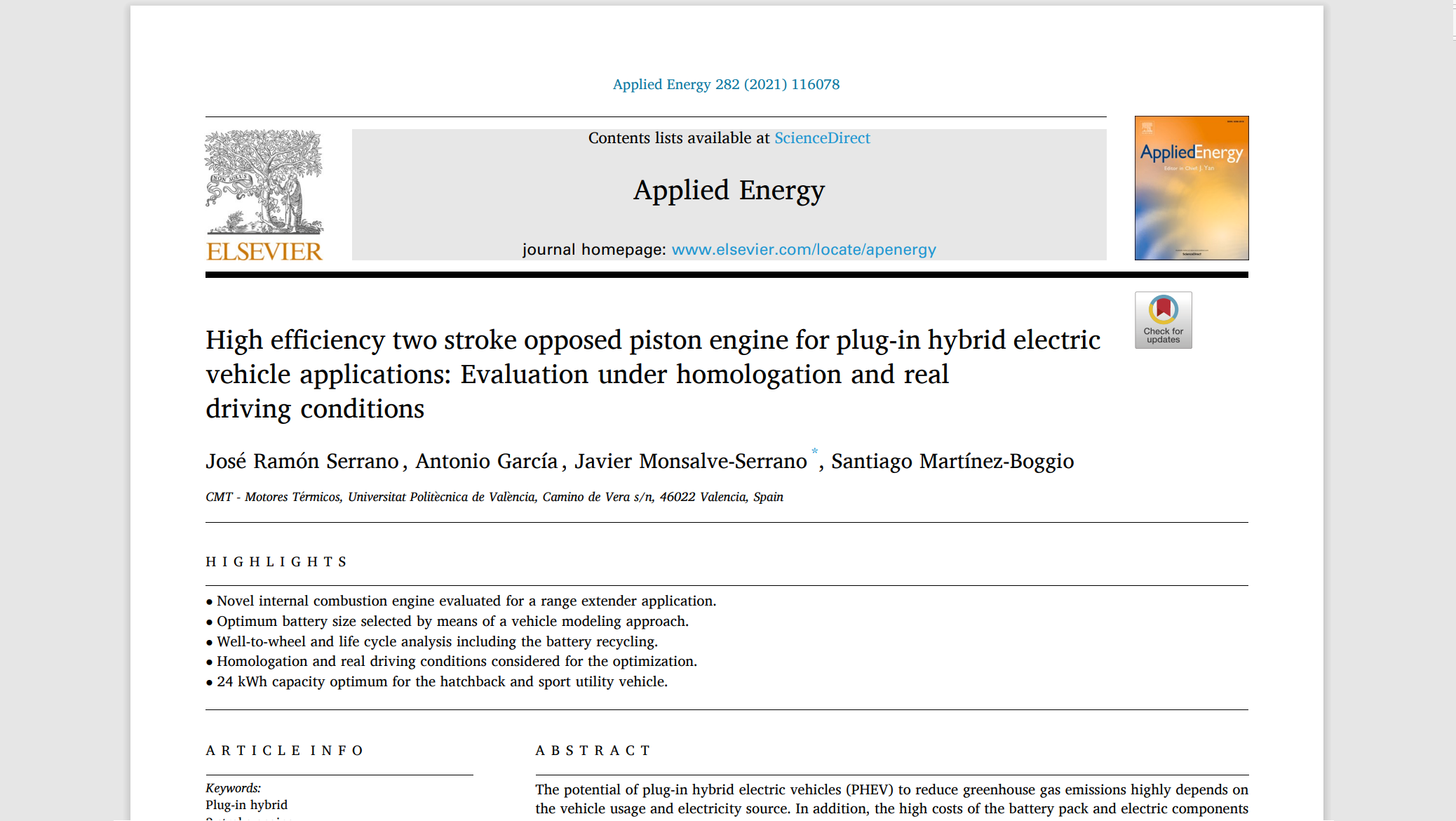 Applied Energy is one of the World most prestigious scientific journals and being published not once but twice is a great honour. We thank the CMT of Universidad Politécnica de Valencia for using their expertise to make this a reality.