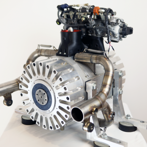70% Lighter & smaller and more powerful than a 2S while more efficient and silent than a 4S, so far we have developed and tested 3 prototypes, the latest one being a 500cc which achieved TRL6 (technology readiness level). Right now, we are actively looking for a strategic partnership in order to fund and power development and industrialisation for the final stage of this project which will be a 700cc coupled directly to a generator with no reduction gear for range extender applications. We will surely have good news on this front soon.